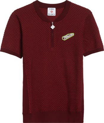 Built in dense jacquard with a tactile handfeel, this polo sharpens the silhouette with a ribbed blade collar, then adds attitude with a signature diamond-shaped pull at the zip. The neon-edged chest logo slices through the surface for a bright hit that further nods to the retro-eclectic brand's POV.
