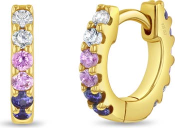 These enchanting children’s huggie hoop earrings bring a burst of color and sparkle to any outfit with their cascading ombré cubic zirconia stones shimmering along the front. Crafted from 14k gold over 925 sterling silver, they offer a warm, radiant glow paired with exceptional durability for everyday wear. Their smooth huggie design ensures a comfortable fit for little ears, while the vibrant gradient stones add a playful yet elegant touch. A delightful accessory that brightens up every moment, from school days to special occasions. A small gift box is included with purchase.