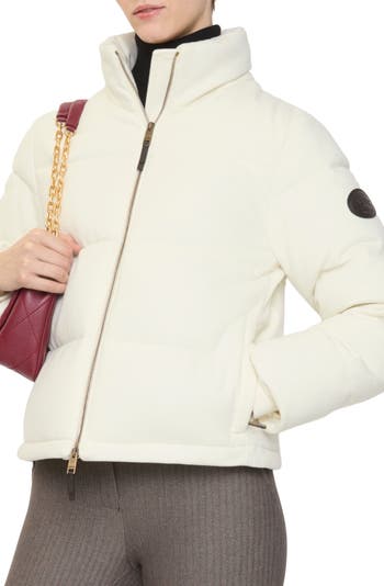 A funnel-neck puffer jacket elevated in cashmere, brushed for a soft finish and filled with goose down and feathers. Cut to a regular fit, the Ambleside features a drawcord hem to adjust the shape and a Burberry Check packaway hood for unpredictable weather. The design is finished with a leather Knight stamp, an archival motif first used in the 1980s.||Two-way zip closure|Packaway drawcord hood|Side zip pockets|Drawcord hem|Storm cuffs|Leather patch with Equestrian Knight Design at sleeve|Burberry Check lining|Comes with a garment bag