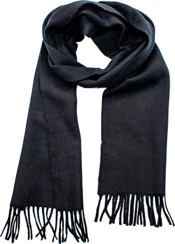 Cashmere and wool woven scarf in solid color with tubular fringes