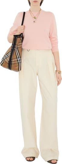 A crew-neck sweater in cashmere blend jersey, knitted to a regular fit. The lightweight style features an embroidered tonal Equestrian Knight Design and is lined at the collar with Burberry Check.||Rib-knit trims|Embroidered Equestrian Knight Design at side