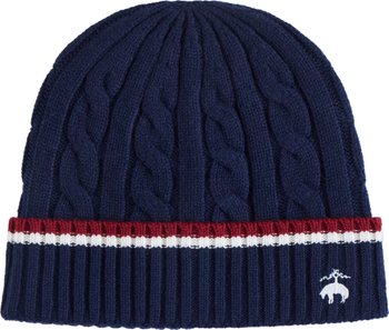 Cable and rib knit hat made from a rich cashmere blend provides natural warmth and a soft touch. Features a two-tone contrast tipping at the ribbed cuff for a subtle distinction and an embroidered logo on the cuff.