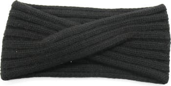 Cashmere headband with criss-cross on front in ribbed chunky stitch