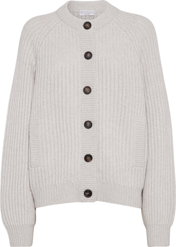 - Horn button closureCrew-neckDrop shoulderRaglan shoulder with balloon sleeveHand pocketsRib knit