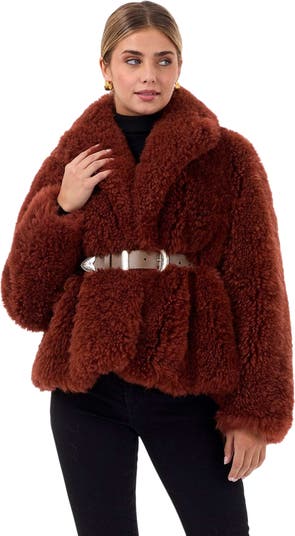 This cashmere goat jacket features a tailored belt, combining plush softness with a flattering silhouette for elegant, cozy warmth.