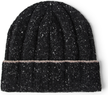 Known for their elevated fineness and insulating properties, the noble cashmere fibers provide the knitting with lightness and warmth, enriched with the special mottled effect of the flecked yarn.