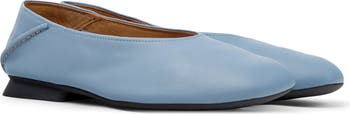 This square-toe ballet flat boasts a soft leather upper and a collapsible heel that provides slip-on convenience and multiple styling options.
