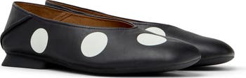 A dot-dappled flat rendered in beloved black and white adds a whimsical touch to lots of looks.