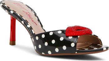 Make a retro-chic statement in this stiletto sandal featuring sparkling appliqués and classic polka dots.