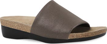 An arch-supporting footbed provides oh-so-cushy comfort in a versatile slide sandal with a minimalist design.