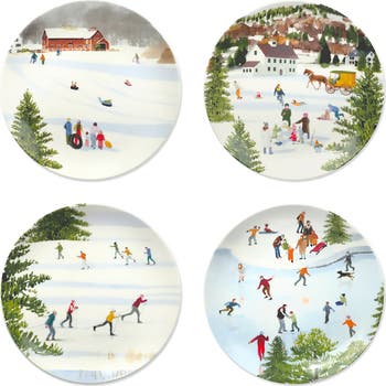 X Felix Doolittle "Winter Wonderland" Plates, Mixed Set of 4 - Porcelain