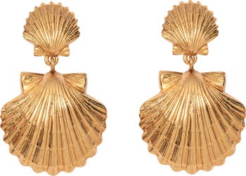 Bring a 'just raided a mermaid's jewelry box' gleam to your look with these lightweight, vacation-ready drop earrings in a playful shell design plated in 18-karat gold.