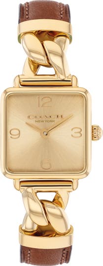 COACH Cass Leather Strap Bracelet Watch, 22mm, Alternate, color, Gold