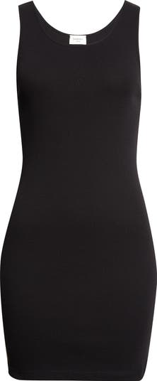 This body-hugging tank dress cut from stretchy cotton rib and edged with narrow binding is branded with Cassandre embroidery at the center chest.