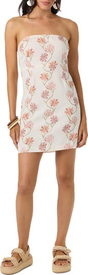 Show off your shoulders in this flowery minidress perfect for date nights and sunny parties.