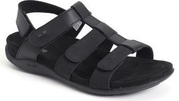 A strappy cage-like upper with adjustable closures offers a customizable fit in a leather sandal ground on a durable rubber sole to make it an instant warm-weather favorite.