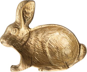 - An elegant cast aluminum dish shaped like a rabbit, featuring a luxurious gold finish