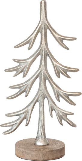 Cast Aluminum Tree with Mango Wood Base, Silver Finish