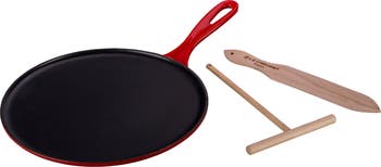 Making a stack of crepes is easy when your kitchen is outfitted with this low-sided pan and the accessories to make them perfect every time.