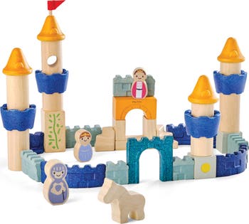 Unleash your kiddo's imagination with this delightful castle set made of chemical-free rubberwood perfect for building their perfect kingdom. Through play, children will develop problem-solving skills, self-expression, mathematics, continuity, permanence and creativity.