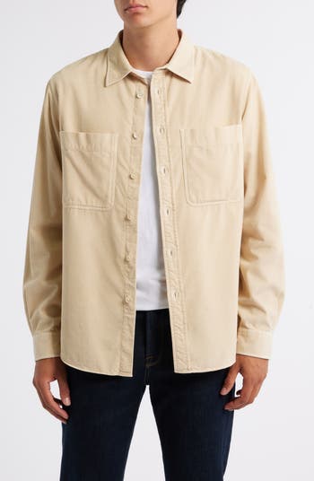 Pinwale organic-cotton corduroy brings texture and warmth to a shirt designed in a versatile solid with a smartly pointed collar and a lower hem that stays tucked and looks great when you leave it out. Cut with a bit of extra room in the chest and sleeves, it's easy to layer over or into your favorite cool-weather looks.