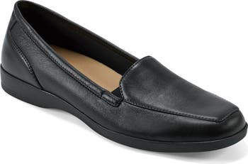 Step into total comfort with this moc-toe leather flat featuring a cushioned footbed with arch support and elastic gore insets for easy on and off.
