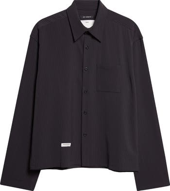This striped button-up is all about architecture, not nostalgia. Smooth gabardine delivers a crisp handfeel with real durability, while the slightly abbreviated cut shifts the proportions into something sharper and more current.