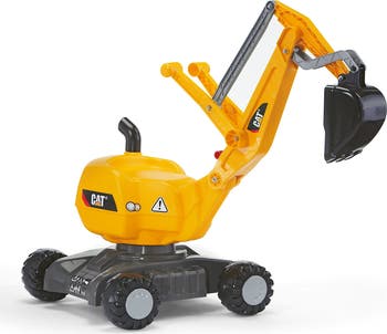 With the Caterpillar Digger kids can dig in the dirt with a BIG shovel! The excavator has a large digging shovel with dual action levers for easy scooping and dumping. The high impact blow molded resin body rotates 360 degrees and sits on 5 rolling resin wheels to easily move forward and backward.
