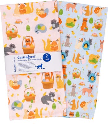 - Faster drying, less effort, and more fun! Higher absorbency for swift drying. This fun Easter dish towel set can double up as Easter decorations for the home that are designed to make your kitchen tasks faster. Whimsical designs by a NY dog mom show off Easter kitties for the perfect gift for cat moms or gift for proud cat dads, teacher gift, hostess gifts, housewarming gift - for anyone who loves animals!