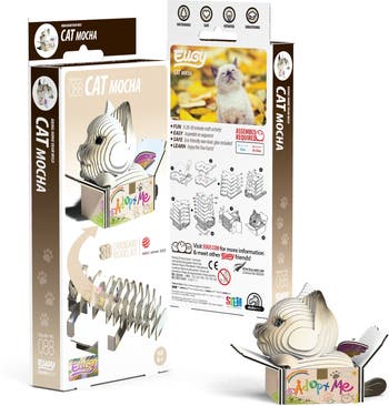 EUGY Puzzles are environmentally friendly cardboard 3D puzzles that take 10-20 minutes to assemble.