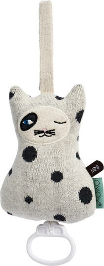 The Cat Music Mobile is both a cute accessory and a music-playing toy that can help babies fall asleep. Music will play by pulling down the ring at the bottom softly. The Cat Music Mobile is made of 100% cotton, knit, and has a polyester padding and music part inside. For cleaning it is recommended to wipe with a wet cloth – spot clean only.