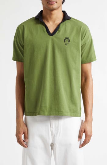 From Bode's tribute to American composer Morris 'Moose' Charlap comes this cotton polo with a peering kitty patch inspired by Lewis Carroll's Cheshire Cat—a tribute to Charlap’s 1966 score for 'Alice Through the Looking Glass.'