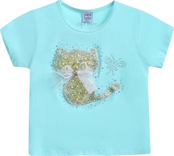 The Cat Applique T-Shirt is a delightful addition to everyone's wardrobe. Crafted in a soft cotton material, this t-shirt features an adorable cat applique that adds a touch of playful charm. The round neck ensures a comfortable and classic fit, while the short puff shoulders provide a charming and girly touch. The straight hem offers a neat and simple finish, making this t-shirt versatile and easy to pair with various outfits.