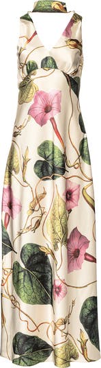 Designed with a fluid bias cut this full-length gown drapes beautifully over the body, creating a silhouette that is both timeless and flattering. The soft V neckline enhances its feminine appeal, while the detachable scarf offers versatile styling wear it tied for a chic touch or let it flow for a more relaxed look.