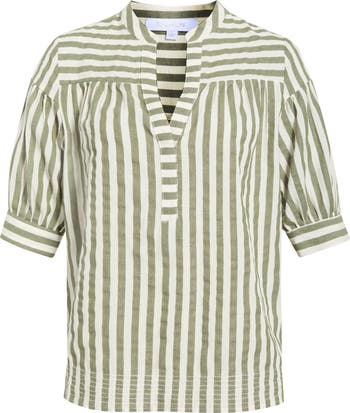 Bring a crisp note to your look when you build it around the smart stripes and cool cotton of this split-neck top cut for a relaxed fit that makes the most of the lightweight cotton fabric.