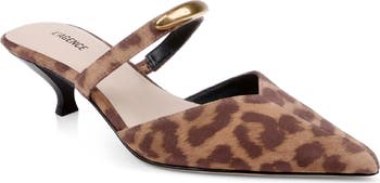 A shaved kitten heel gives just enough height to this pointy-toe mule that glints with a hardware accent.