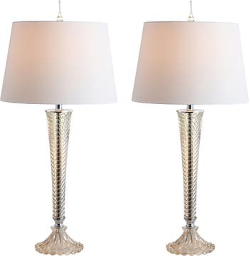 - Add a lovely spark to an existing decor with the beautiful presence of this fluted glass table lamp