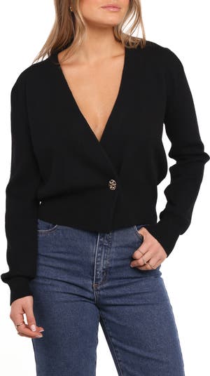Minimal by design, this rib-trim cardigan skims the waist and fastens with one sculptural, goldtone button that does all the talking.