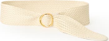 Define your silhouette with a touch of texture when you wear this woven belt that features a pull-thru buckle for easy adjustments.