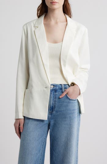 An unstructured fit adds an element of ease to this minimalist blazer featuring an apropos single-button closure.