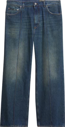 Artful fading and a dramatically creased front channel the comfort and effortless style of an old-favorite in these wide-leg jeans cut from rigid nonstretch cotton.