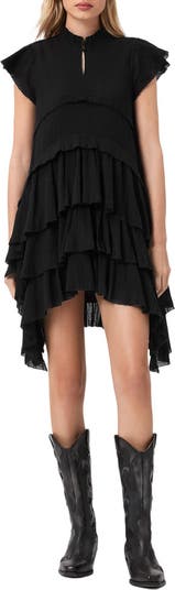 Flowy layers of ruffles and a dramatic high-low hem lend an avant-garde vibe and gothic romance to this enchanting cotton dress.