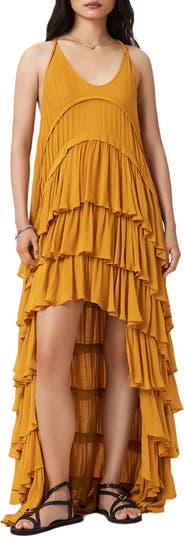 Embrace the dramatic twist of this tiered high-low dress, designed in a swishy silhouette that moves with you.