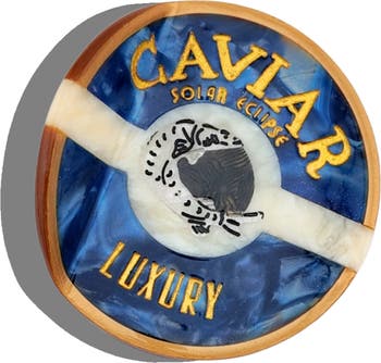 A handpainted claw clip designed to resemble a tin of caviar lends a dose of whimsy to your locks while effortlessly holding them in place.