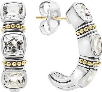White topaz cushions lend irresistible sparkle to these sterling silver hoop earrings highlighted by rows of signature 18-karat gold Caviar beading.