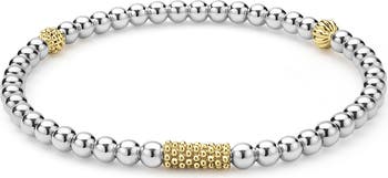 Sterling silver beads and 18-karat-gold beading give polished texture and refinement to this understated bracelet.
