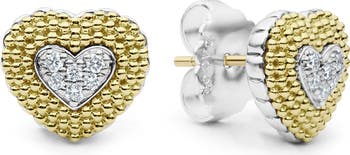 Lend luxe love to any look with these two-tone heart studs featuring signature caviar beading and diamond pavé.