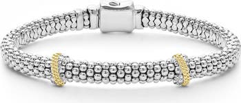 Crisscrossing stations feature 18-karat gold and diamonds in this sterling silver rope bracelet crafted with signature caviar beading.