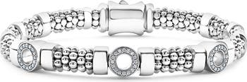 This Caviar-beaded rope bracelet crafted in sterling silver is aglow with diamond-lined stations.