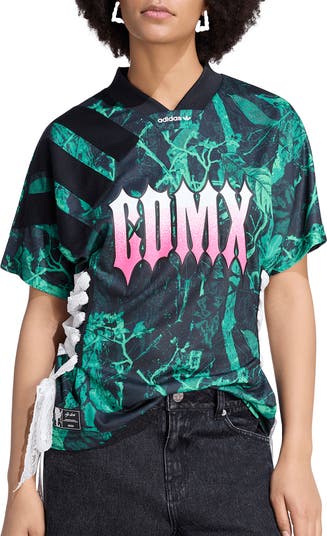 Designed in collaboration with Maria Marquez as a nod to Mexico City, this one-of-a-kind jersey T-shirt features bold front-and-back graphics layered over reconstructed elements that celebrate individuality with modern edge.